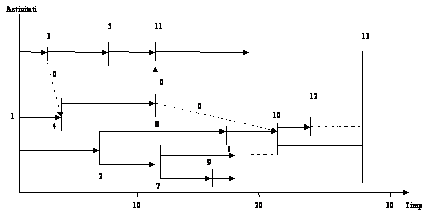 Diagrama sageata se deduce usor din precedenta care nu este decat o reprezentare diferita, orientata catre punerea in evidenta a duratelor, inlantuirii lor si a drumului critic.