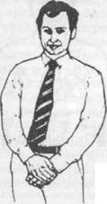 Statutul social poate influenta si ci gesturile impletirii bratelor. Un superior isi poate face simtita superioritatea prin incrucisarea bratelor in fata celor nou intalniti. Sa presupunem, de exemplu, ca la o intrunire de la o intreprindere directorul general face cunostinta cu mai multi angajati noi. Dupa ce ii saluta cu o strangere de mana in maniera dominanta, va sta fata de ei Ia o distanta zonala sociala, cu mainile tinute langa trup sau la spate, in postura de apucare a mainii cu palma exprimand superioritate (vezi Figura 44), eventual cu o mana in buzunar. El isi va incrucisa rar bratele, pentru a nu trada nici macar o umbra de nervozitate. In schimb, dupa strangerea de mana cu seful, interlocutorii vor recurge la gestul complet sau partial de impletire a bratelor, din