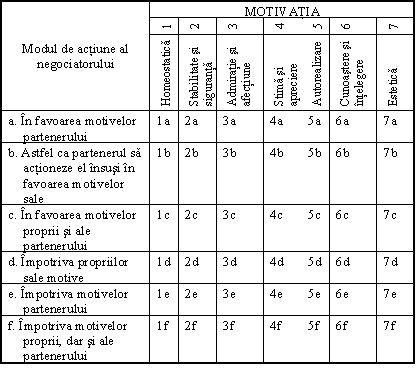 Prin combinarea acestor tipologii si niveluri rezulta o matrice cu 126 de cuburi separate, fiecare dintre ele reprezentand un mod specific de interactiune intre negociatori, aflat la intersectia dintre un nivel de abordare, un tip de negociator si un tip de trebuinta. (Fundamentals of negociating, 1988. Gerard I. Nierenberg)