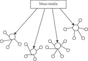 mesajele mass-media ajung in mod indirect la publicul larg, adica ele sunt mediate prin influenta relatiilor interumane;