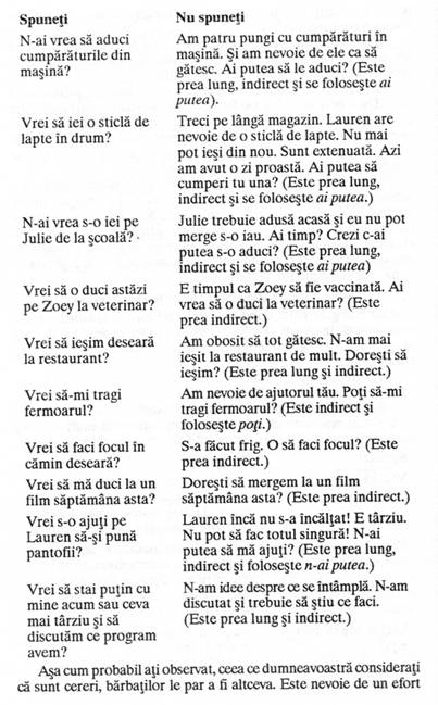 Mai exista insa un motiv pentru a incepe sa-i cereti ceea ce face deja. Trebuie sa fiti sigura ca cereti intr-un fel care poate fi auzit de el si la care poate reactiona. Asta inteleg prin expresia "formulare corecta a cererilor'.