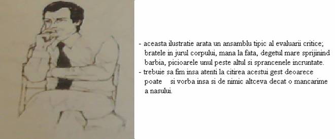 - privirea drept in ochi - sugereaza dorinta de cooperare, persoana corecta, constienta
