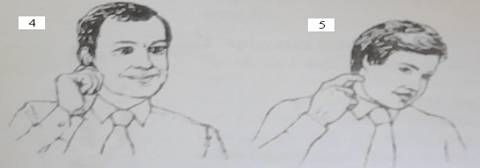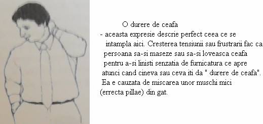 - apucatul de ureche sau frecatul urechii (ilustratia 4) sau scarpinatul pe o parte a gatului