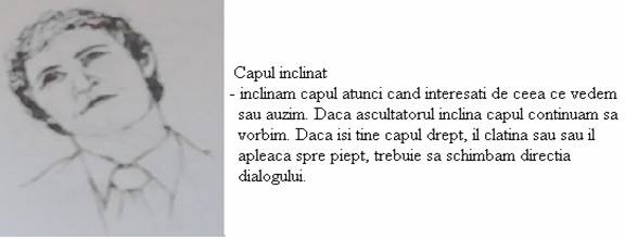 vorbitor prin inclinarea capului aprobator sau dezaprobator, prin zambet sau nedumerire)