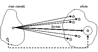 In majoritatea situatiilor decizionale exista urmatoarele coordonate definitorii (fig.2.27): starea curenta (data) a sistemului condus si criteriile de decizie; multimea de strategii (decizii) posibile; multimea de efecte posibile (admisibile) ale deciziilor; efectele sunt noile stari in care trece sistemul ca urmare a aplicarii deciziilor.
