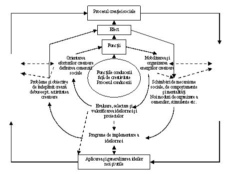 Intre creativitate si conducere exista o stransa interdependenta (fig.2.29); in comparatie cu creativitatea, conducerea indeplineste trei functii esentiale: orientarea creativitatii, mobilizarea efortului creator, selectionarea ideilor viabile in vederea valorificarii practice.