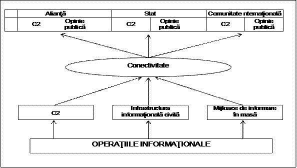 Pana la un anumit punct, raspunsul poate fi da; ambele concepte se concentreaza pe comanda-control, ca pe ceva ce poate fi atacat sau aparat. Exista insa si cateva argumente care au contribuit la noul concept, acela de operatii informationale. Primul este legat de dependenta crescanda a organizatiilor militare de tehnologia informationala si de comunicatii. O mare parte din calitatea finala a complexului de comanda-control depinde calitatea datelor, de receptarea lor in timp oportun, de software si de legislatii. Exista acum noi mijlolace de manipulare si de distrugere a acestor facilitati. Conceptul prezent de C2W nu ia in calcul ceva de genul unui atac de software. Al doilea argument ar fi cel legat de faptul ca operatiile informationale nu se limiteaza doar la vremuri de criza sau conflict. Actiuni asupra sistemelor de comanda-control si asupra informatiei au loc acum. Mai multe tari au raportat activitati ale hackerilor, crackerilor si activitati controlate, probabil, de grupuri sau state, cu intentia de a patrunde in sisteme, de a descoperi parole si de accesa informatia. Interconexiunea cu diferite medii intormationale creeaza vulnerabilitati, care pot fi exploatate in orice moment. Tinta poate fi societatea sau chiar comunitatea internationala, asa cum se arata si in figura 4.