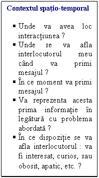 contextul temporal: ceea ce se spune intr-un anumit moment capata un sens in functie de ceea ce s-a spus anterior;