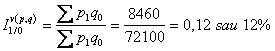 Aplicand aceasta formula se obtine indicele cu structura fixa a pretului mediu egal cu 1.1376, ceea ce semnifica faptul ca pretul mediu a crescut in luna ianuarie fata de luna decembrie de 1.1376 ori, crestere datorata atat modificarii preturilor unitare, cat si a cantitatilor respective.