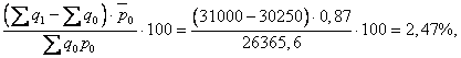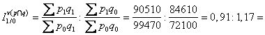Deci, modificarea preturilor unitare, in conditiile folosirii drept pondere a cantitatilor vandute din luna iunie, trebuia sa ajunga la o valoare a marfurilor de 0,91 ori sau 91%.