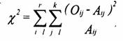 "r" si "k" - numarul de randuri si, respective, de coloane ale tabelului de contingenta;
