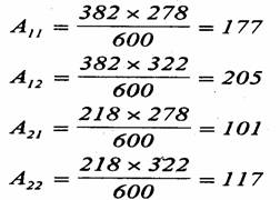 Aij - frecventele randului "i" si ale coloanei "j" , care se asteapta sa rezulte conform ipotezei nule (de obicei in tabelul de contingenta aceste valori sunt trecute in paranteza).