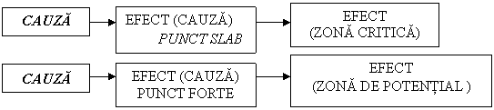 III. Evidentierea cauzala a principalelor disfunctionalitati (puncte slabe) si a principalelor aspecte pozitive (puncte forte) si depistarea, pe aceasta baza, a zonelor critice care pot afecta evolutia produselor firmei sau a zonelor de potential ridicat a caror existenta si dezvoltare poate determina cresteri substantiale pentru firma (figura nr.2.3.1.):