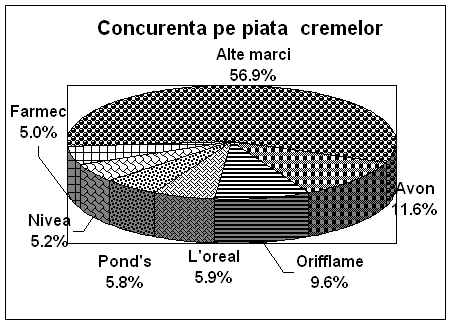 Pe piata cremelor, principalii concurenti ar fi: L'oral, Pond's, Nivea, Orifflame, Avon, etc toate firmele avand pe piata mai multe tipuri de creme.