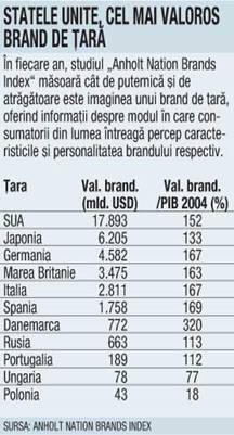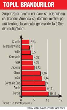 Coinitiatorul clasamentului e chiar britanicul care in urma cu cateva luni se anunta interesat sa-si ofere expertiza pentru construirea brandului Romania: Simon Anholt. Expert de calibru international in brandingul tarilor, al regiunilor si al localitatilor, Anholt a folosit in cercetarea sa instrumentele specifice ale companiei Global Market Insite Inc. (GMI).