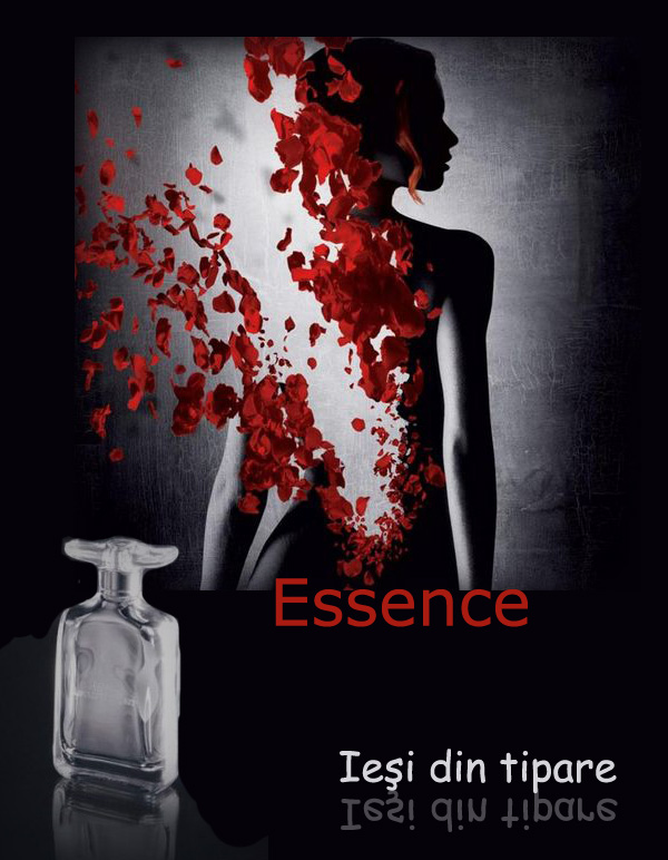 Anuntul publicitar va fi acelasi in fiecare luna, deoarece obiectul principal de activitate al firmei este crearea de parfumuri prin amestecarea esentelor preferate ale clientului. Acesta va contine pe fundal portretul unei femei ce foloseste un parfum al firmei "ESSENCE",parfum creat dupa propriile preferinte.Modalitatea in care utilizeaza parfumul evidentiaza faptul ca aceasta are nevoie doar de parfumul visurilor ei pentru a se simti implinita Tot in anunt se vor gasi informatiile de contact ale firmei si sloganul acesteia: "IESI DIN TIPARE!".