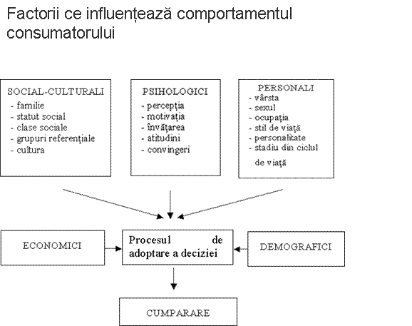 2 - factorii mediului, care se refera la: factorii socio-demografici (curba vietii de familie, clasele sociale), grupuri de referinta, familia, mediul economic
