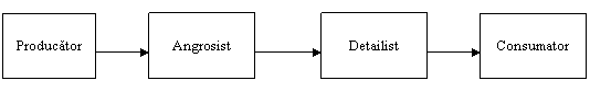 - canal scurt, in care apare intermediarul, este un canal indirect, cu un singur intermediar, detailistul, considerat canal traditional. Se utilizeaza mai ales pentru produsele agroalimentare perisabile(carne, lapte, etc), dar si pentru produsele de valoare mare, de noutate, sau cand piata este concentrata;