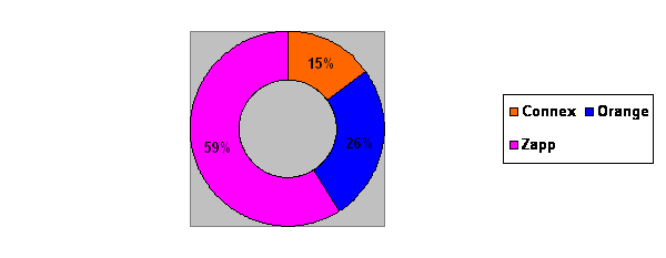 Analizand raspunsurile date in chestionar, persoanele intervievate au declarat - avand la baza diverse elemente de comparatie, de ex. tehnologia folosita - ca prefera serviciile Zapp Mobile (59%) in locul celor de la Connex (15%), si sunt urmate imediat de serviciile celor de la Orange (26%), acesta fiind deci principalul competitor al marcii Zapp Mobile.