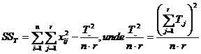 b) Suma abaterilor patratelor pe total se compune din suma abaterilor patratelor intre grupuri (SSTr) si suma abaterilor patratelor in cadrul grupurilor (SSE):