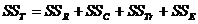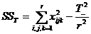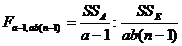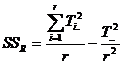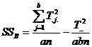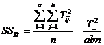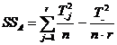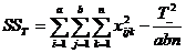 c) Suma abaterilor patratelor intre grupuri (SSTr) este formata din trei componente (SSA, SSB, SSAB) care exprima efectele ce rezulta din variabilitatea factorului A, factorului B si efectele de interactiune: