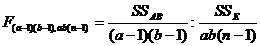 SSAB = SSTr - SSA - SSB =151,75 - 101,25 - 48,12 = 2,38