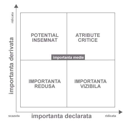 La capatul opus se afla atributele cu importanta crescuta, atat declarata cat si derivata. Acestea constituie atributele critice ale satisfactiei consumatorului.