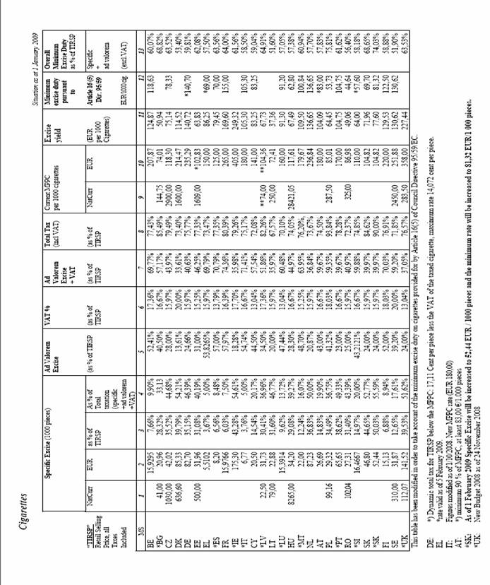 This has been established by changing the fiscal code through the ORDER no. 3687/2008 from 17th of December 2008 regarding the level of the minimum excise for cigarettes.
