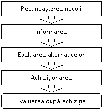 Activitatea de decizie privind achizitionarea unui produs de catre consumatori se desfasoara in mai multe etape. Parcurgerea intr-o anumita ordine a etapelor difera de la un produs la altul. In unele cazuri este posibil ca unele etape sa nu fie parcurse.
