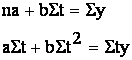 Determinam coeficientii functiei y=a+bt folosind ecuatiile lui Gauss dupa o dreapta: