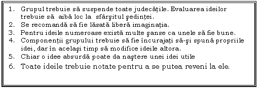 Aceasta metoda consta in reunire catorva persoane intr-un grup (de exemplu, grupul de creatie) si propunerea spre rezolvare a unei probleme precise.