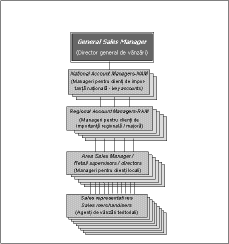 Modul de organizare/structura a fortelor de vanzare depinde de marimea, profilul si obiectivele firmei: