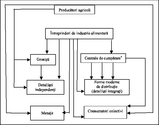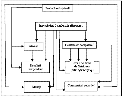 (bovine, in special)In Romania, sistemul de distributie moderna specific tarilor dezvoltate (prezentat in subcapitolul 4.2. Sistemul si canalele de distributie a produselor agroalimentare in tarile dezvoltate) este inca la inceput, nivelul de colectare a produselor este in formare. Doar pentru produsele ce necesita schimbari sub stantiale de forma exista sisteme de prelucrare descentralizate (pentru cereale: Cerealcom si Comcereal; pentru exportul de lana agenti locali ai cumparatorilor turci). Centre de colectare viabile pot fi intalnite in sfera de actiune a procesatorilor de lapte.