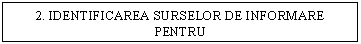 Identificarea surselor de informare pentru culegerea datelor necesare. Asa cum am precizat anterior, datele primare sunt cele culese pentru prima data, piata cu toate elementele sale componente fiind sursa cea mai valoroasa. Datele secundare fiind deja culese si nu intotdeauna de un compartiment de marketing se impart in surse interne si respectiv externe intreprinderii. Printre cele interne se numara: statisticile asupra distributiei, diferitele rapoarte intocmite privind activitatea generala a firmei, datele din evidentele contabile precum si arhiva societatii in timp ce sursele externe sunt formate din: surse oficiale (Institutul National de Statistica), literatura de specialitate, ziare, reviste, publicatii, informatii de la distribuitori, organizatii internationale 9uniunea Economica Europeana, Banca Mondiala, etc.), asociatii economice (Camera de Comert, Industrie si Agricultura), etc.