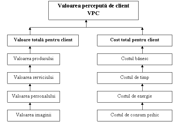 Maximizarea valorii percepute de client este rezultanta comparatiei valoarii totale pentru client ca ansamblu de avantaje economice, functionale si psihologice pe care le asteapta clientul respectiv cu costul total pentru client care reprezinta suma costurilor de natura baneasca, de timp, de energie si de consum psihic pe care acesta se asteapta sa le suporte in evaluarea, obtinerea si debarasarea de oferta de piata data.