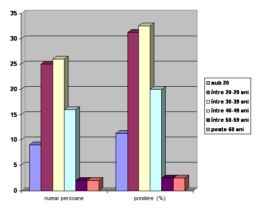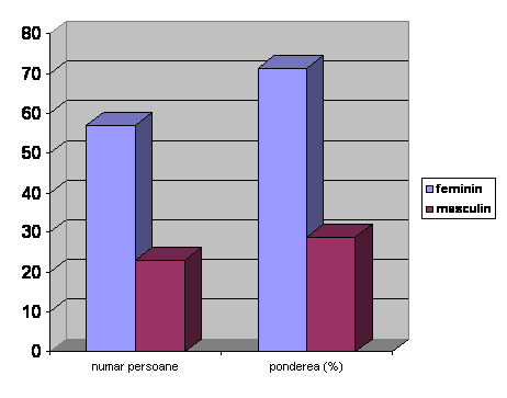 Se constata ca ponderea cea mai mare o au femeile cu un procentaj de 71.25%, iar barbatii de 28.75%.