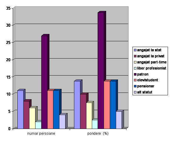 angajat la stat angajat la privat angajat part-time liber profesionist patron elev/student pensionar alt statut |