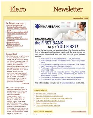 Un exemplu de newsletter este cel trimis de FinansBank clientilor sai pentru a-i informa cu detalii despre un nou produs. Campania a fost realizata de firma de publicitate online Vodanet pentru clientul sau Finansbank. Acest newsletter a fost trimis abonatilor revistei online www.ele.ro