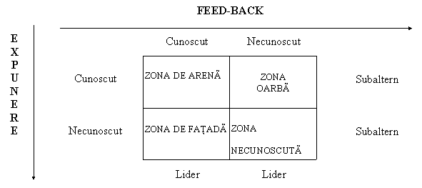 - cel de-al doilea, mai complex, are in vedere faptul ca din combinarea situatiilor de cunoastere sau necunoastere a informatiilor esentiale, sentimente, perceptii etc. pot fi identificate 4 zone distincte, in care se poate plasa managerul, fiecare zona avand trasaturi specifice. Astfel: