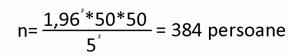 ajutorul acestor date am determinat marimea n a esantionului in cazul