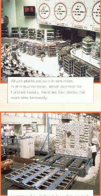 2. Licitatia. Licitatia (prin ceas) ramane esenta pietei floricole zilnice, unde cererea intalneste oferta si unde pretul mondial pentru flori si plante este fixat. Pentru a putea deservi exportatorii si angrosistii moderni, in viitor, ceasul va avea nevoie de imbunatatiri. In curand va fi posibil sa introduci informatii direct in sistemul companiei de pe locul cumparatorului din sala de licitatie si sa cumperi prin ceas din locatii exterioare salii.