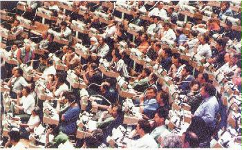 Cladirea. Practic, cladirea licitatiei poate fi divizata in doua parti : zona licitatiei si zona cumparatorilor.
