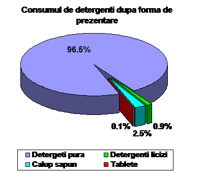 Se observa faptul ca produsele lichide detin ponderea cea mai mare in totalul produselor de spalat. In afara de ratiuni de ordin ecologic, produsele lichide beneficiaza de o utilizare si o stocare mai usoara in comert.