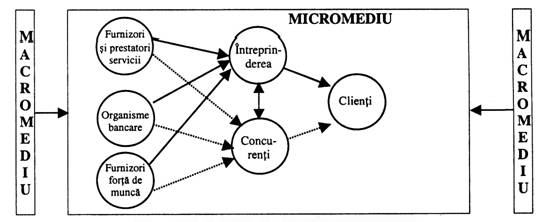 In desfasurarea activitatii sale, intreprinderea insasi se constituie in purtator de nevoi pentru satisfacerea carora apeleaza la resurse materiale, financiare si umane. Totodata, ea este furnizoare de produse (servicii) pentru satisfacerea nevoilor unor agenti economici. In ambele cazuri intreprinderea vine in contact cu agentii de mediu care se plaseaza in imediata apropiere iar actiunile lor se rasfrang direct asupra activitatii sale.