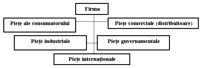 2. Clientii: cei cu care o organizatie doreste sa angajeze schimburi; din aceasta perspectiva firma poate opera cu cinci tipuri de piete ale clientilor care sunt prezentate in figura urmatoare: