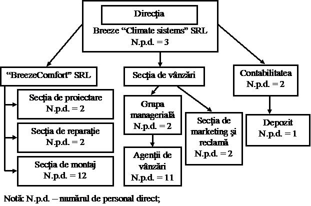 Intreprinderii Breeze "Sistemele Climaterice" SRL ii este specifica urmatoarea structura organizatorica: