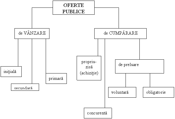 In categoria operatiunilor de piata se includ ofertele publice de vanzare, de cumparare si de preluare, acestea din urma fiind o forma specifica a ofertei de cumarare.