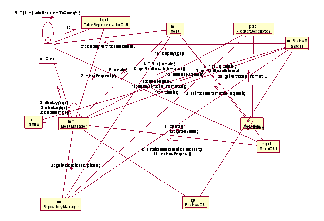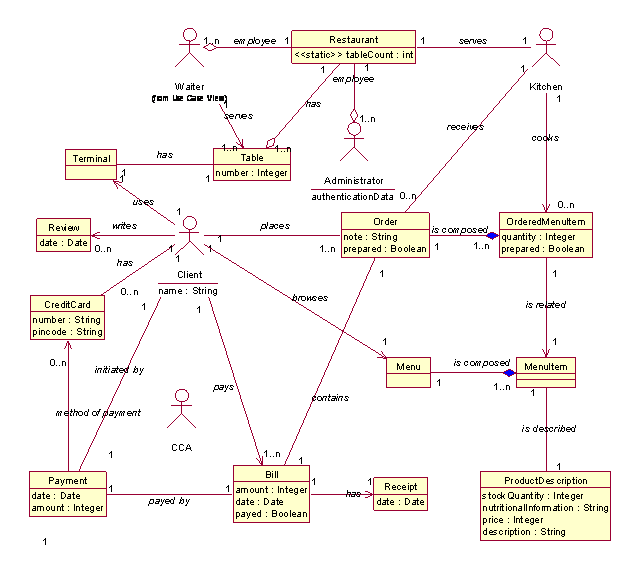 - the entire system is based on the MVC architectural pattern. The View is represented by all GUI classes. The Controller consists in following Manager classes: MenuManager, OrderManager, PaymentManager, ReviewManager, ConfigurationManager. The Model is represented by all other classes (except actors) and encapsulates a data access layer to the persistent storage mechanism (database).