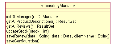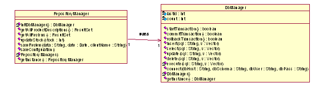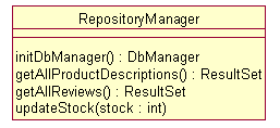 - this package contains the logic for accessing the repository information (in our example, the MySQL database instance). It is part of the Model component in the Model-View-Controller pattern. The package has a manager class RepositoryManager which handles all requests to the repository from the system. It uses DbManager to perform mysql queries in the database. Both classes implement the Singleton lazy-loading pattern earlier described. RepositoryManager defines an internal class Queries which holds all the queries that are executed through DbManager in the database instance.