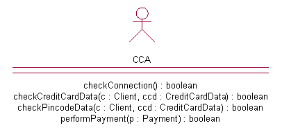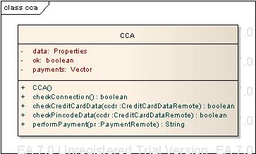 change (if wanted) in cca.properties the data regarding client names and credit card numbers and pincodes. This information is used by CCA class (simulator of a real CCA system) to check for correctness of client credit card data. Please take care to put similar names as in client.properties for client names.